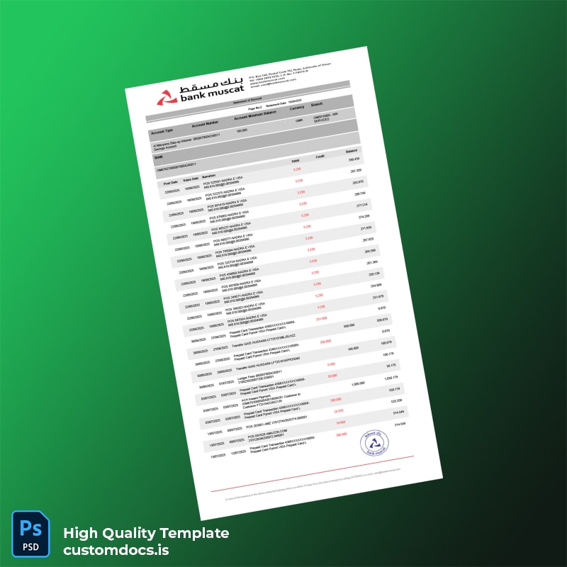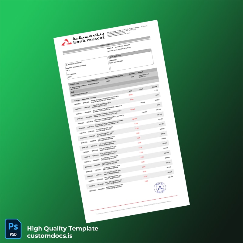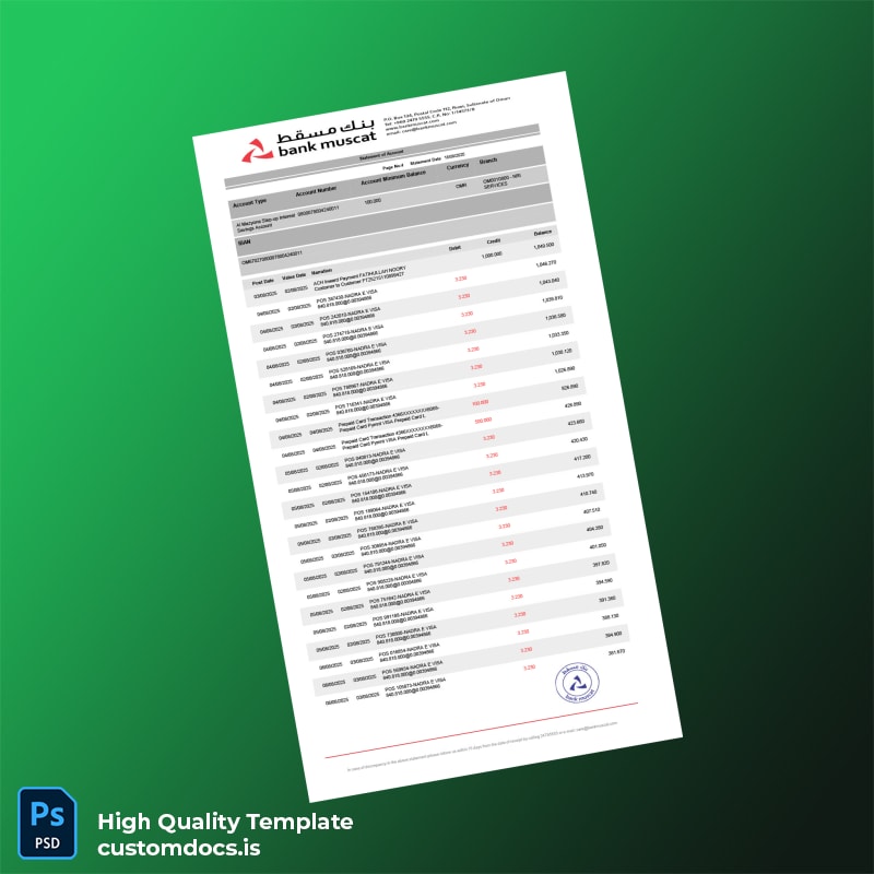 Oman Muscat Bank Statement Template