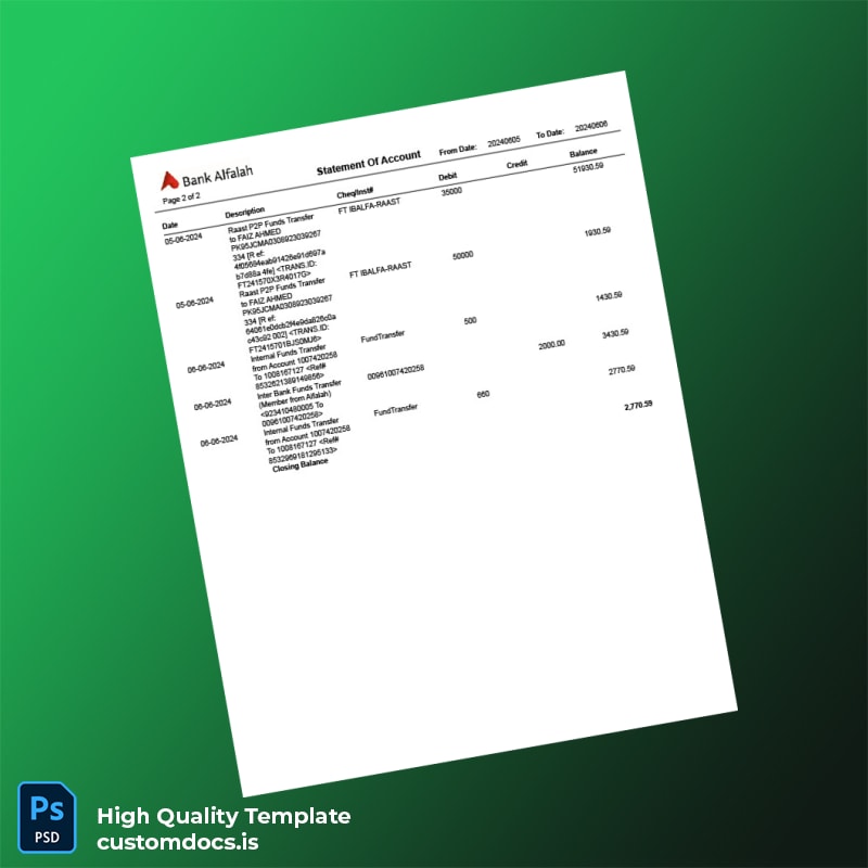 Pakistan Alfalah Bank Editable Bank Statement Template