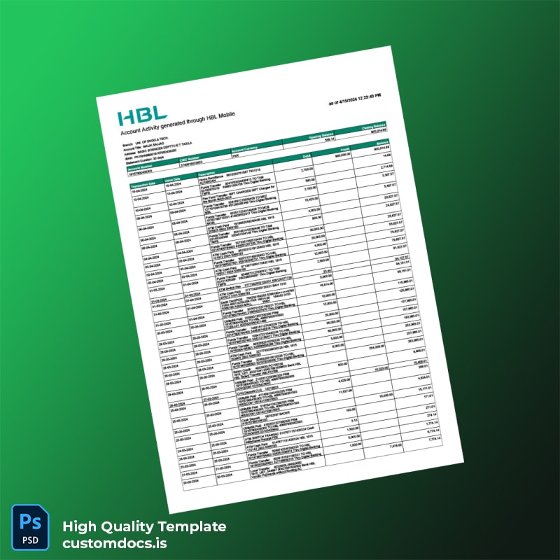 Pakistan HBL Editable Bank Statement Template – Your Reliable Utility Bill Proof of Address Solution