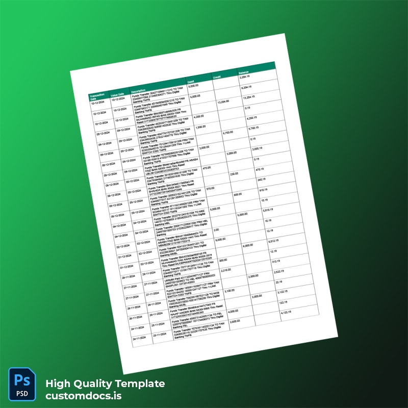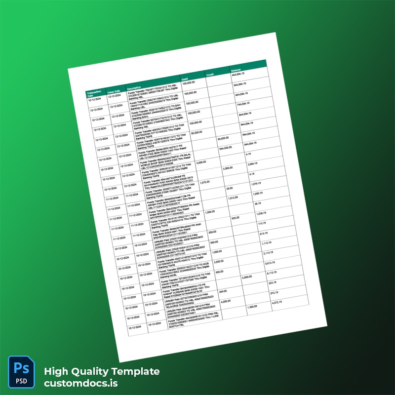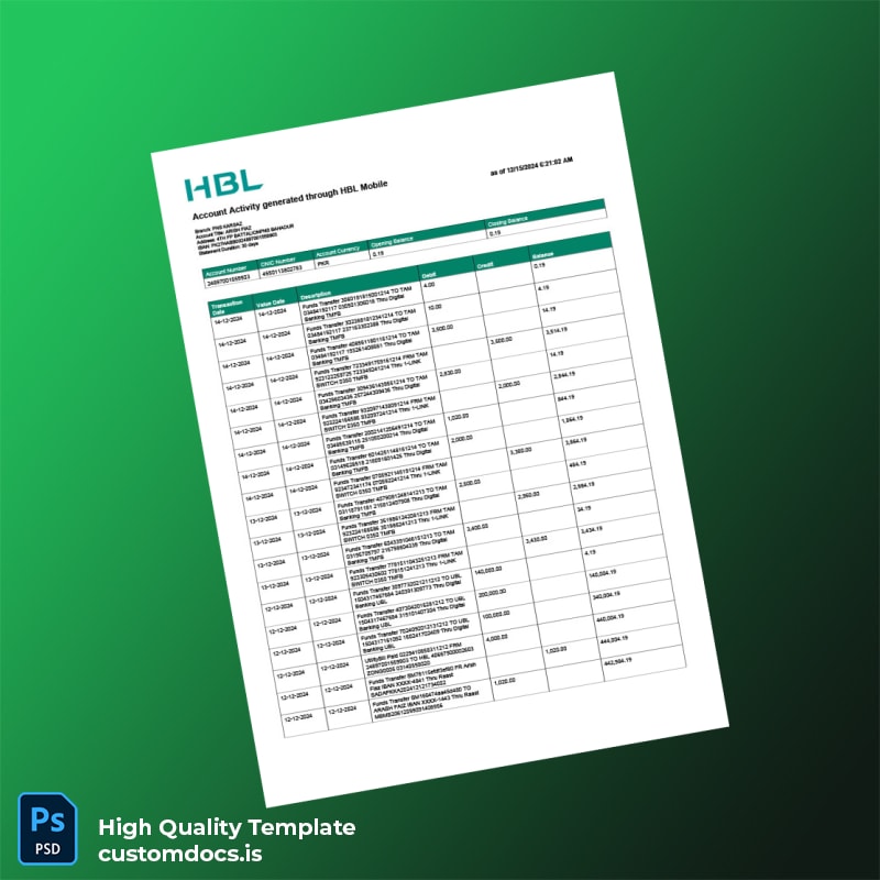 - Designed for Pakistan HBL Mobile banking specifics: Ensures authentic styling aligned with the bank’s statements, increasing acceptance rates during verification.