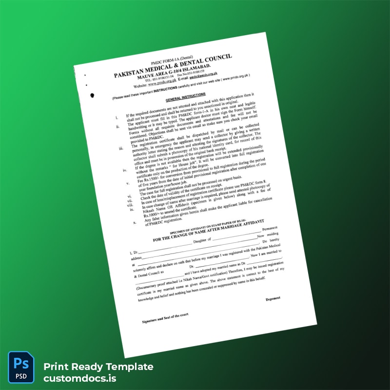 The Pakistan Pakistan Medical Dental Council Business Registration Certificate Template – Word & PDF is the ultimate solution for professionals seeking a seamless way to create or replace official registration documents. Designed to meet the highest standards of clarity and professionalism, this editable registration certificate ensures your business records are always accurate, up-to-date, and ready for submission or verification.