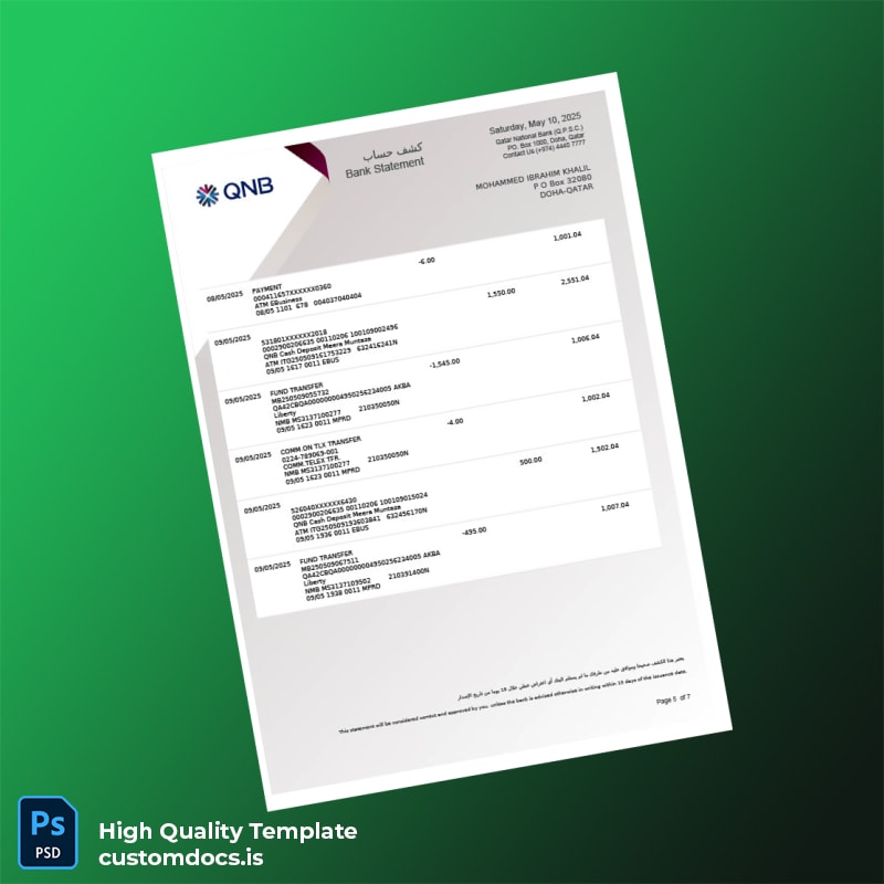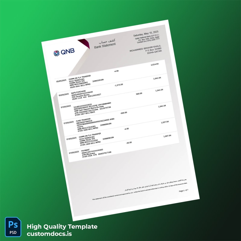No more hunting for documents or worrying about upcoming deadlines. Grab our Qatar National Bank Account Statement Template now, and empower yourself with the confidence to breeze through your next financial task. Discover other options by exploring our editable bank statement template collection or check out our extensive range of bank statement templates to find your perfect fit.