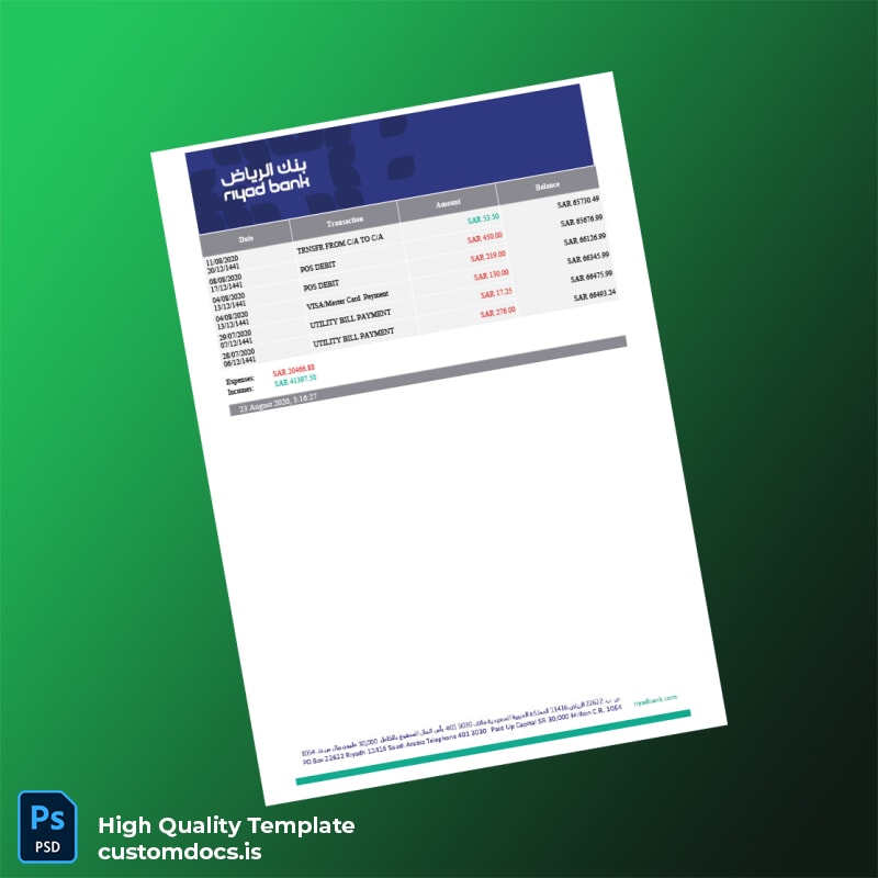 Saudi Arabia Bank Editable Transaction History Template in Word and PDF Formats