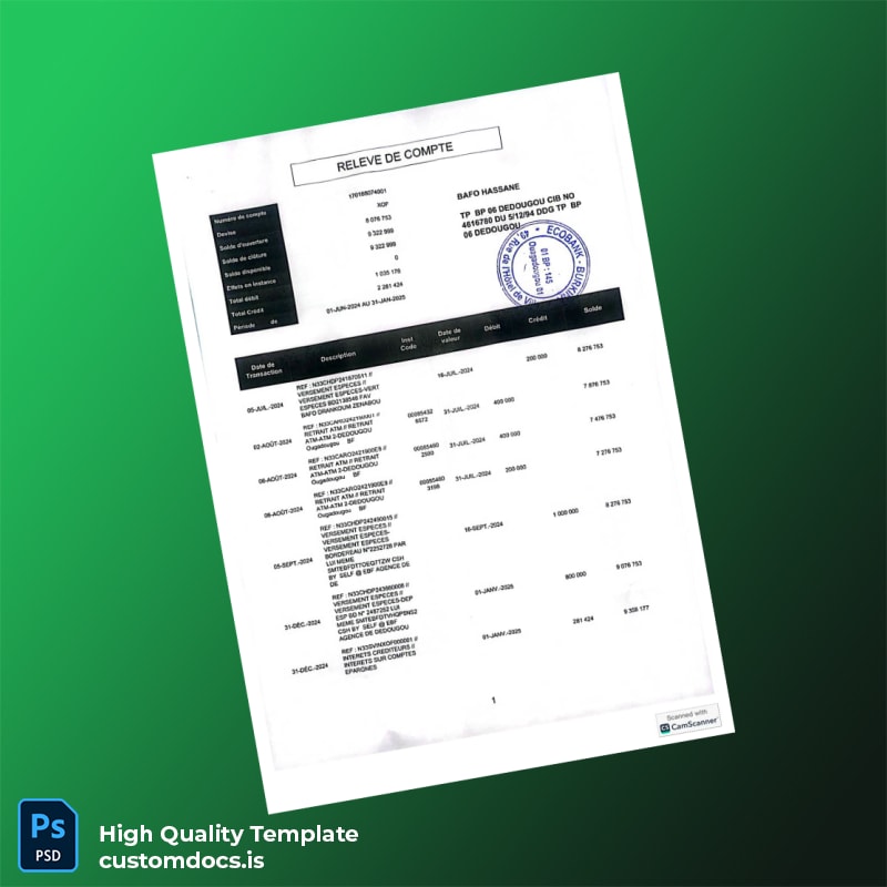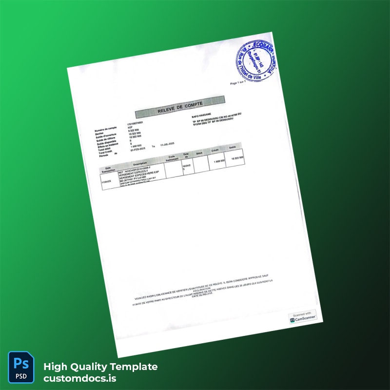 Don’t let financial hurdles hold you back. Achieve clarity and professionalism with our Senegal Bank Statement Template. Download now and streamline your financial documentation process. Explore our related products like the editable bank statement template excel or check out more options in the bank statement template category.