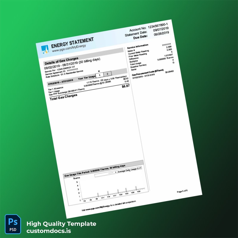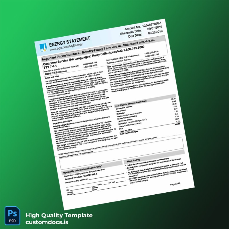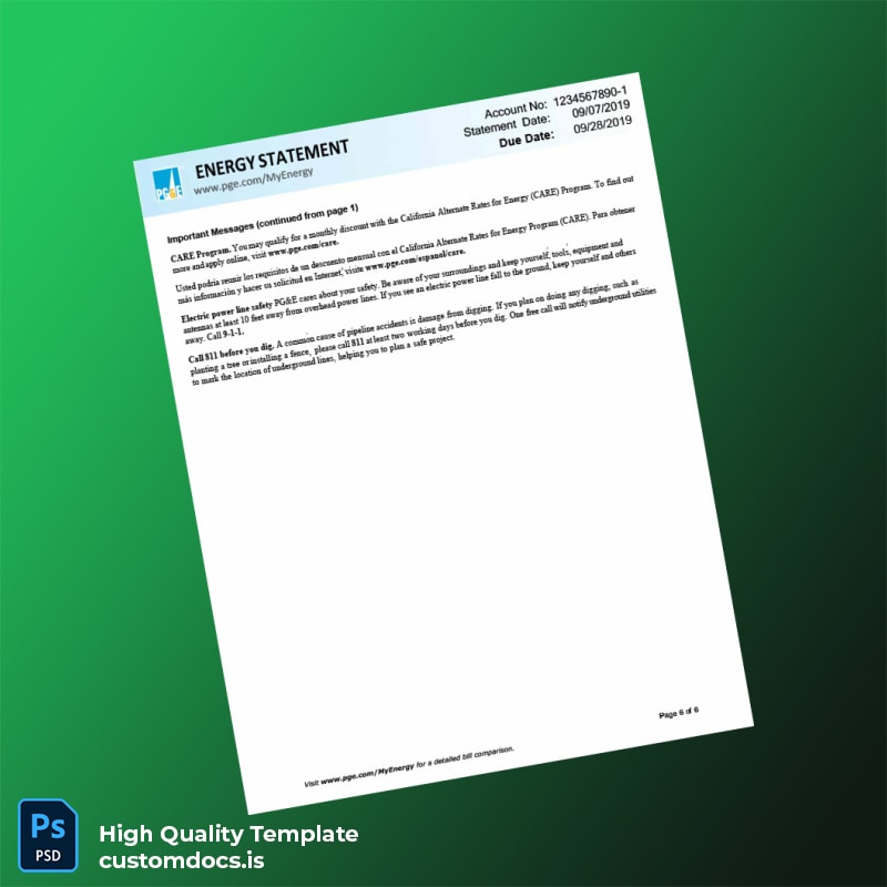 Silicon Valley Clean Energy Editable Utility Bill Template in Word and PDF formats 6 page