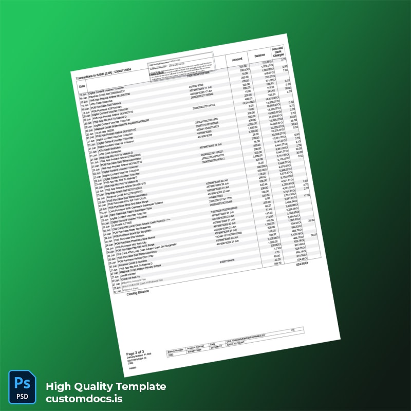 South Africa Easy Account Bank Statement Template in Word and PDF formats 3 page