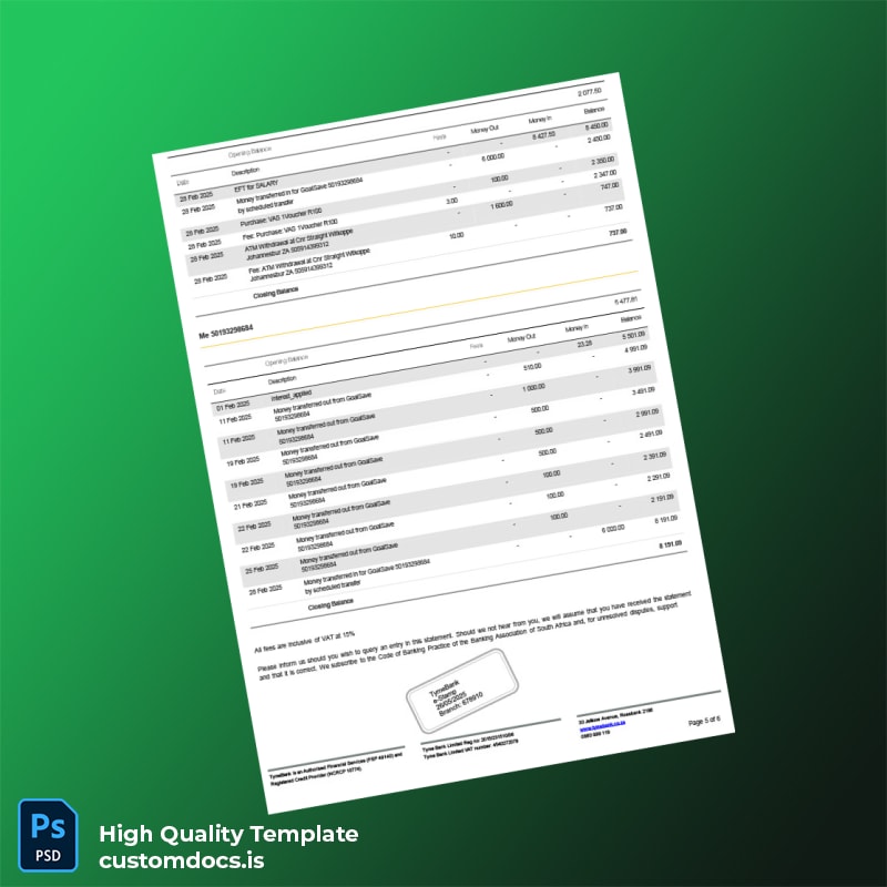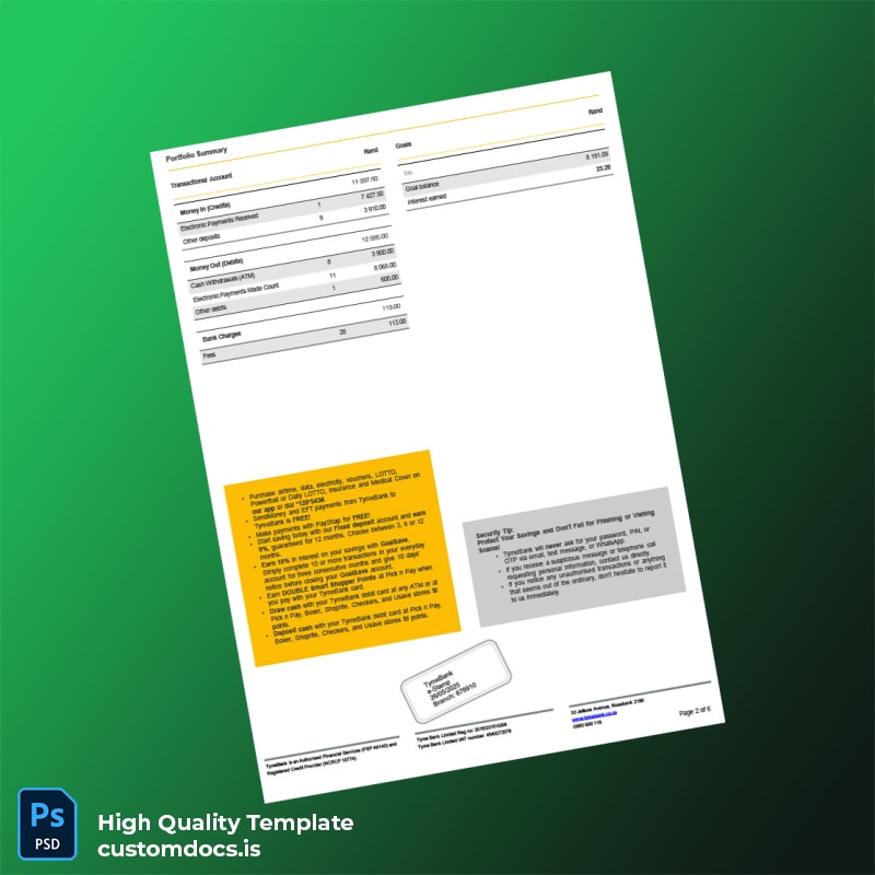 Our South Africa TymeBank Bank Statement Template is packed with features designed to enhance your professional experience: