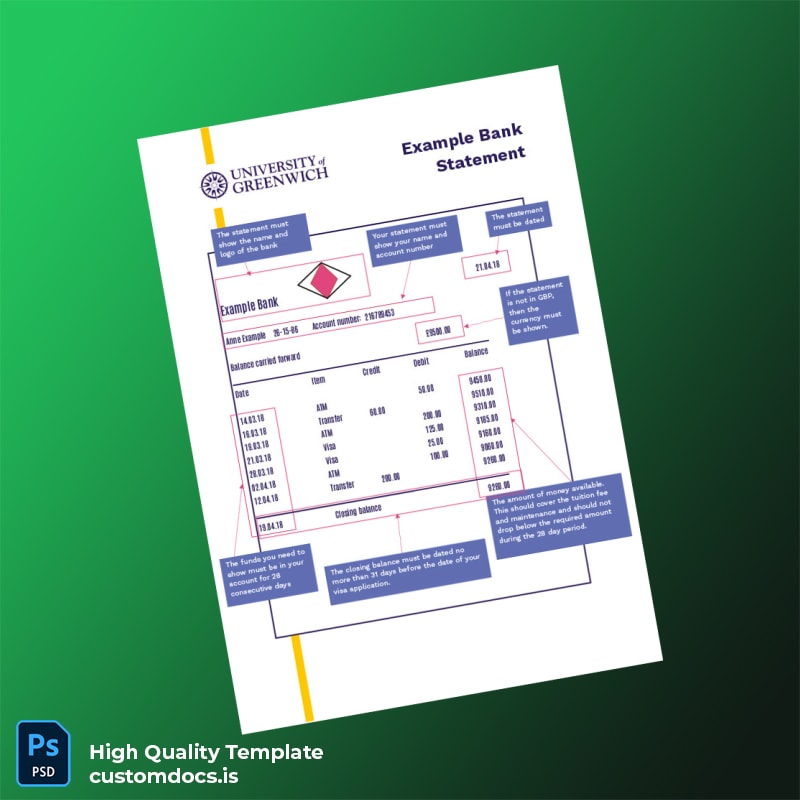 Don’t let missing documentation derail your professional commitments. Choose the UK United Kingdom Example Bank Statement Template and experience the peace of mind in having a secure, editable document at your fingertips. For additional insights, explore related products in our bank statement template category. For further verification of our template’s authenticity, check out This Anchor Text.