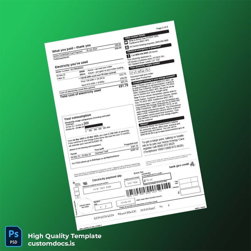 - Designed to replicate official UK British Gas Trading Ltd bills, enhancing authenticity for proof of address or verification requests.
