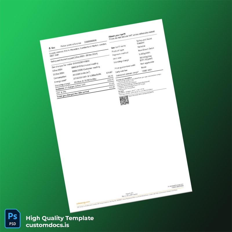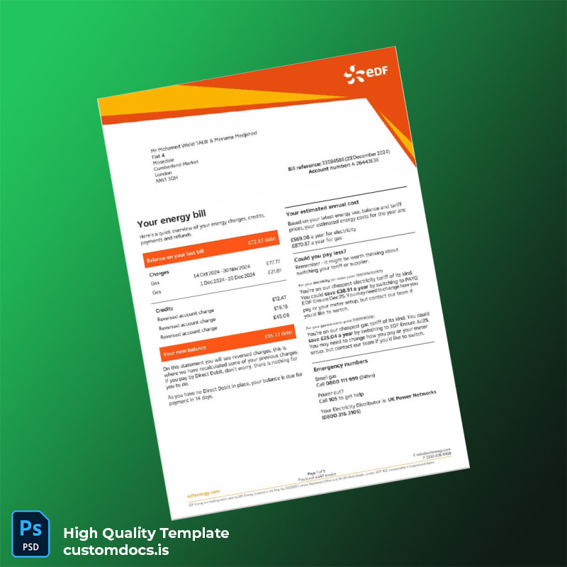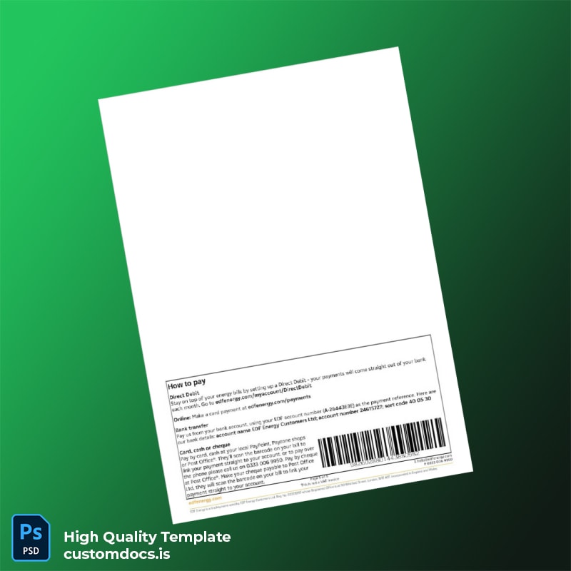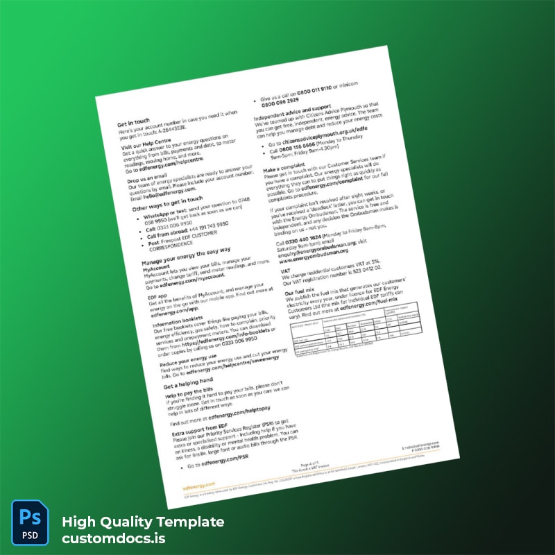 United Kingdom EDF Energy Editable Utility Bill Template in Word and PDF formats 5 page