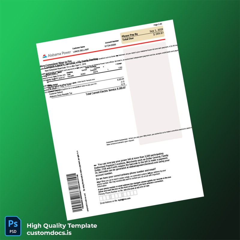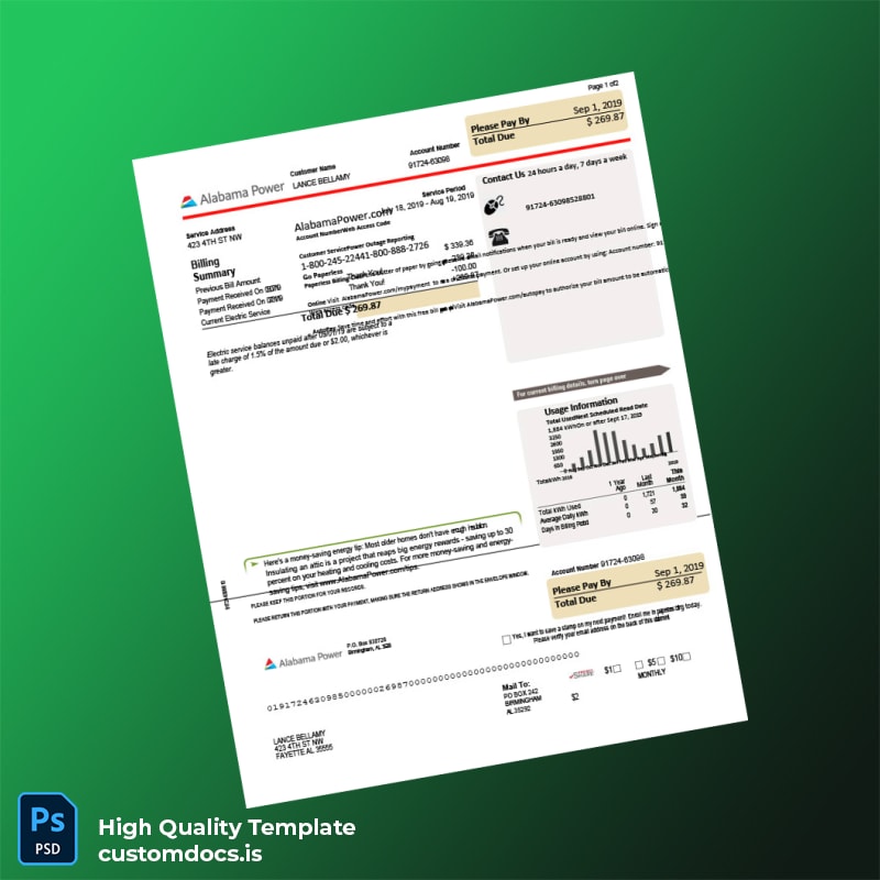 United States Alabama Power Editable Electricity Bill Template in Word and PDF formats 5 page