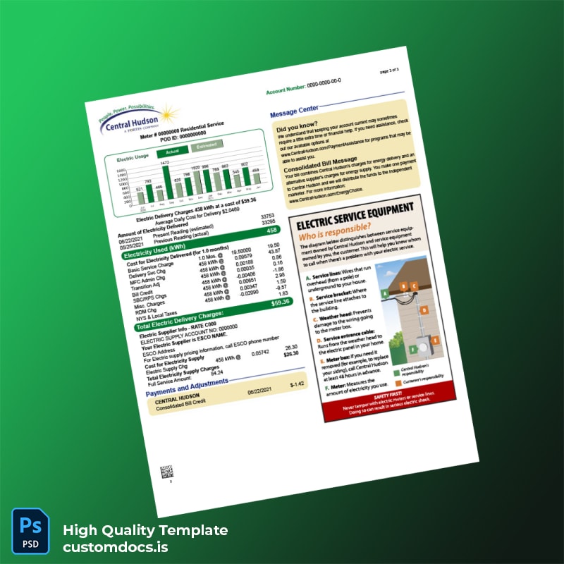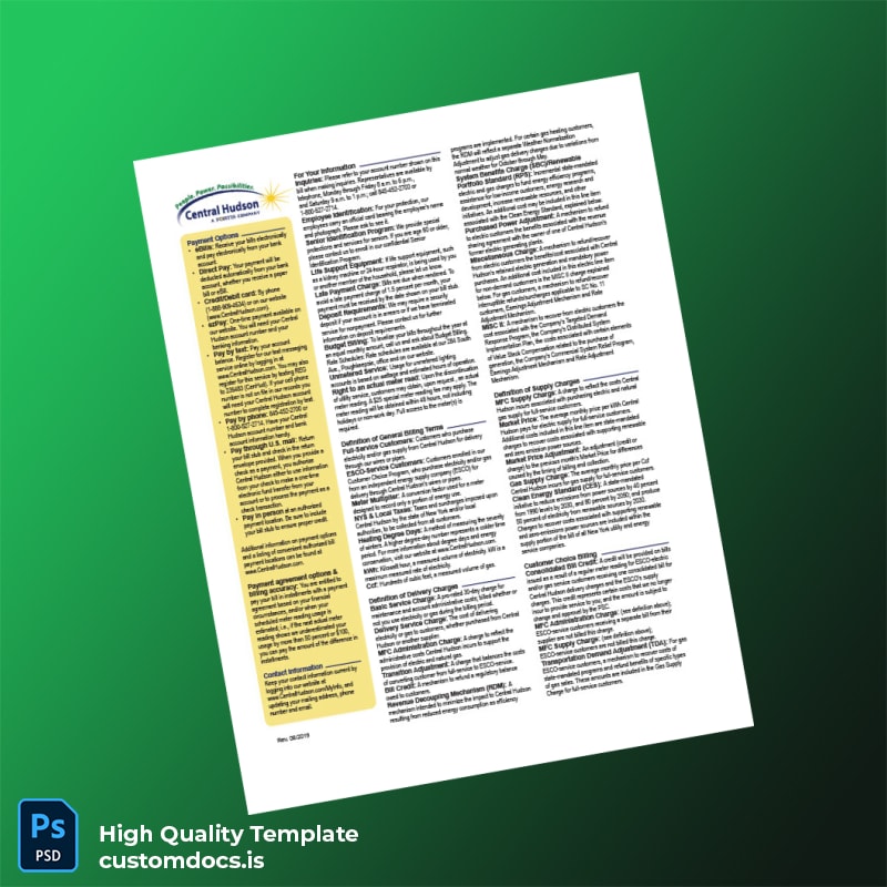 Be the first to review “United States Central Hudson Gas Electric Corporation Editable Utility Bill Template in Word and PDF formats 3 page”