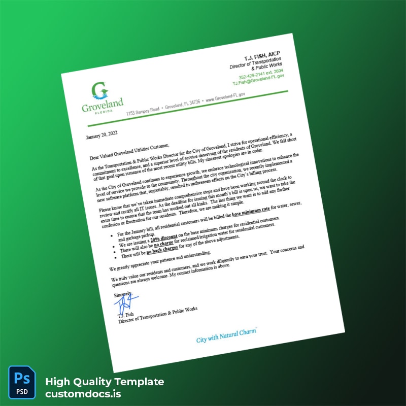 United States City Of Groveland Editable Utility Bill Template in Word and PDF Formats