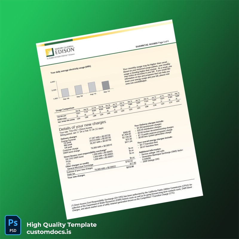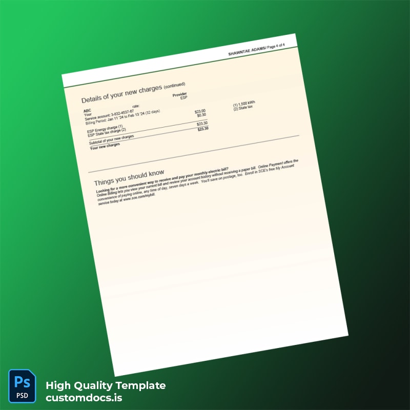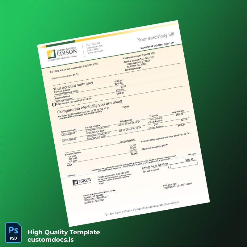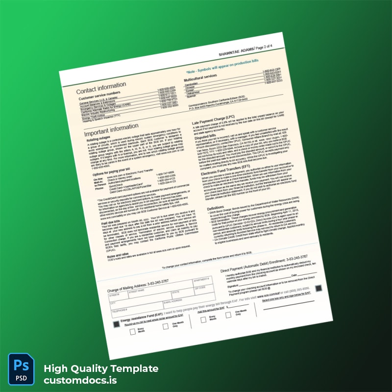 Be the first to review “United States Corona CA Utility Company Editable Utility Bill Template in Word and PDF formats 4 page”