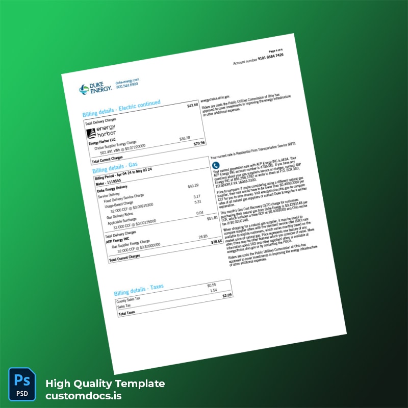 Designed to provide an accurate and customizable utility bill, the United States Duke Energy Editable Utility Bill Template offers a professional, easy-to-edit solution in both Word and PDF formats. This template serves as a reliable utility bill proof of address template, ensuring seamless document management for individuals and professionals alike.