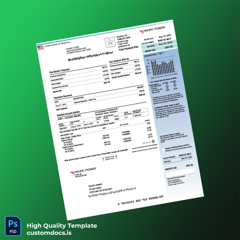 Don’t compromise on reliability when you need a verified, editable utility bill template that works efficiently for your professional requirements. Download the United States Pacific Power Editable Utility Bill Template today and experience the convenience of a ready-to-use, customizable document designed with your urgent needs in mind. Explore more options with our utility bill template to find the perfect fit for every verification scenario.