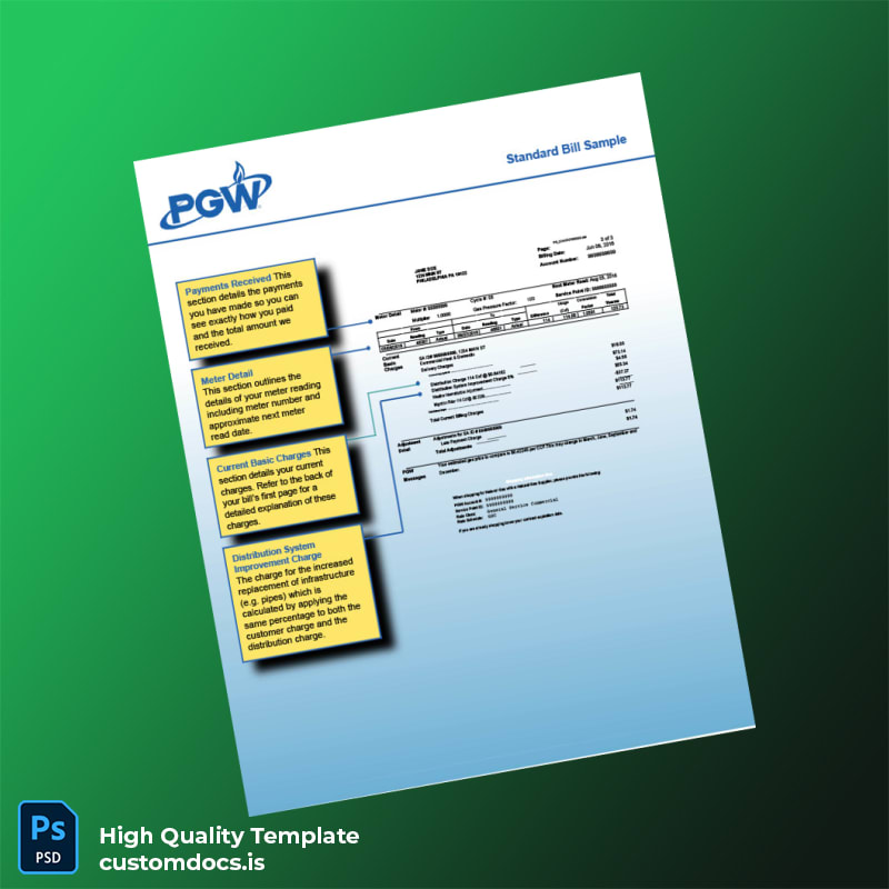 Discover a versatile and professional solution for creating authentic utility bill proofs with the United States PGW Editable Gas Bill Template, available in Word and PDF formats. Designed to meet the needs of professionals requiring reliable, customizable, and legally acceptable utility bill documents, this template offers complete control over every detail, making it ideal for proof of address and verification purposes.