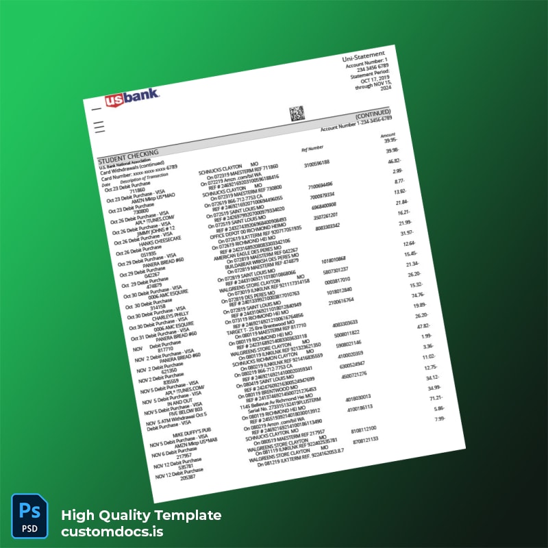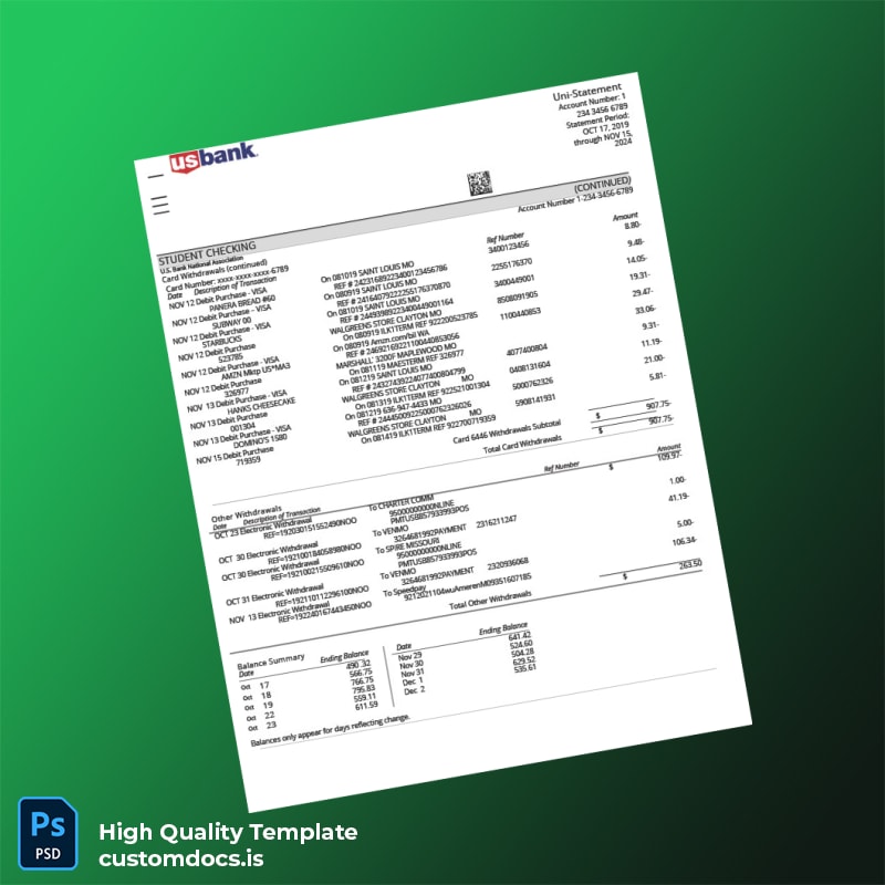 If you find yourself needing a reliable bank statement document for verification purposes, you’re not alone. Whether a lost document, recent theft, or an expired statement is causing you stress, our US Bank Statement Template is the solution you’ve been searching for.