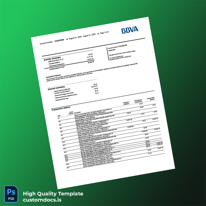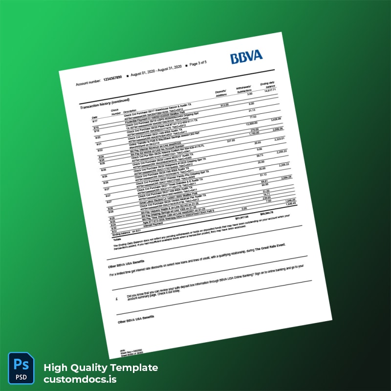 This USA BBVA Bank Statement Template is designed with your needs in mind, offering numerous features that translate directly into professional advantages: