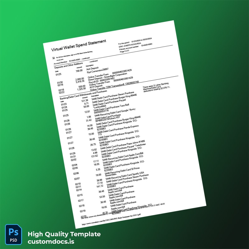 Are you facing the hassle of lost or expired financial documents? Reclaim your peace of mind with our USA PNC Bank Statement Template, available in both Word and PDF formats. This editable bank statement template is crafted to meet the needs of professionals who require quick and reliable solutions in financial documentation.