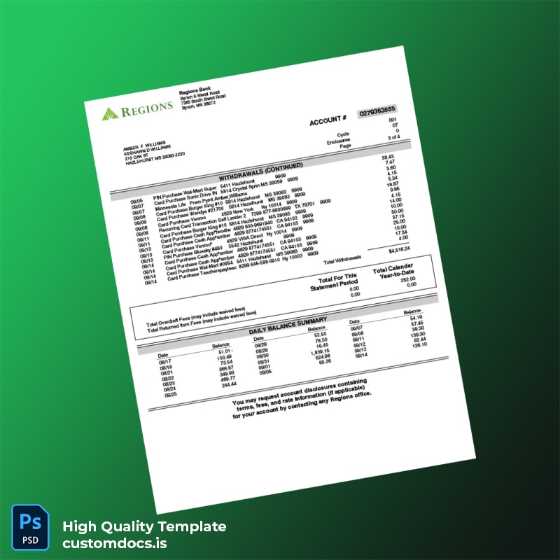 Our USA Regiones Bank Statement Template comes packed with valuable features including:
