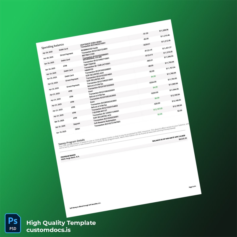 Introducing the USA SOFI Bank Statement Template in both Word and PDF formats: your ultimate solution for creating professional and editable bank statements quickly and easily.