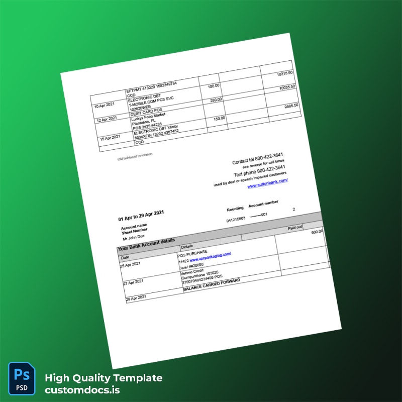 Our USA Sutton Bank Statement Template is designed with your needs in mind:
