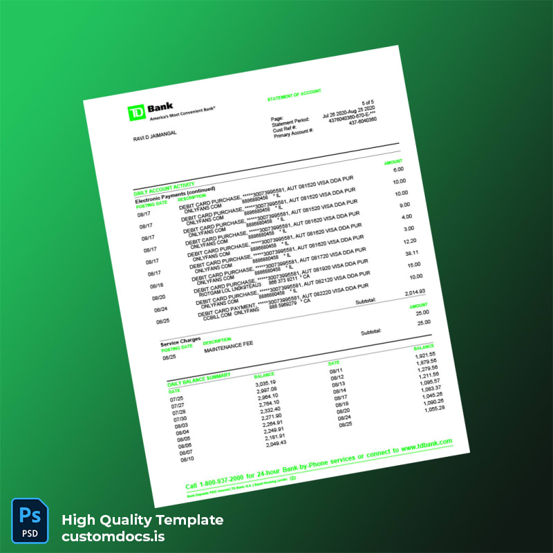Streamline Your Financial Documentation with Our USA TD Bank Statement Template